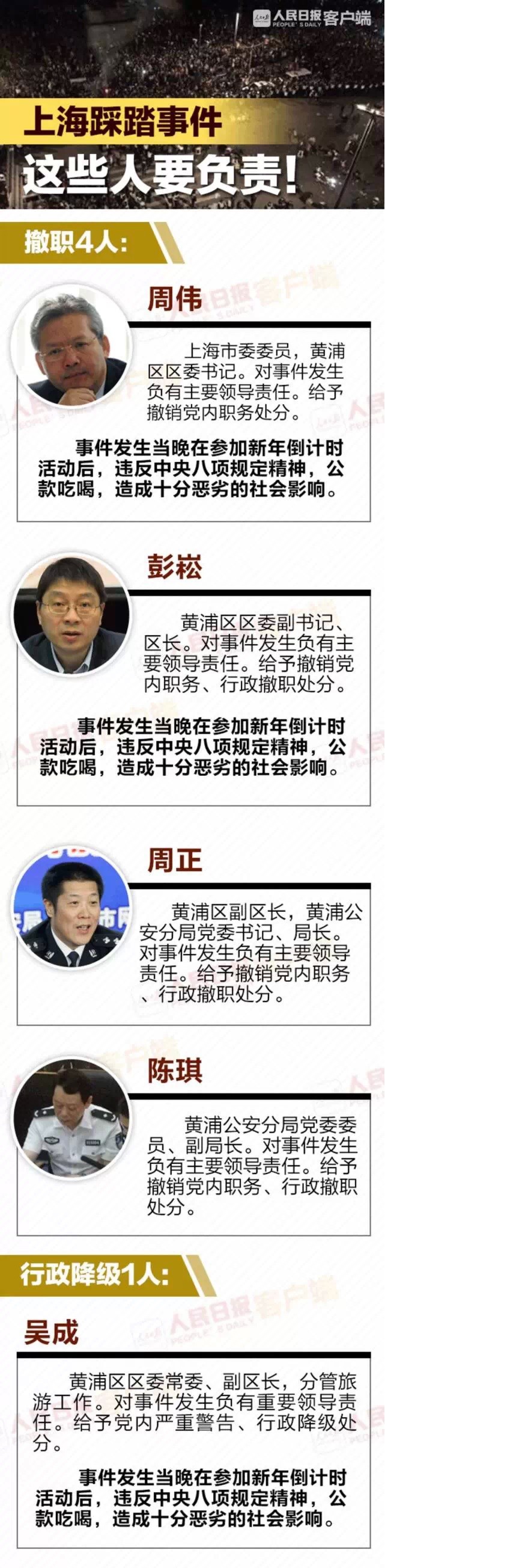 在问责名单上,有11位领导干部,包括黄浦区委书记周伟、区长彭崧的撤职,也包括上海市公安局指挥部的陈昌俊等的行政记大过。为什么没有更高层级的领导被追责?