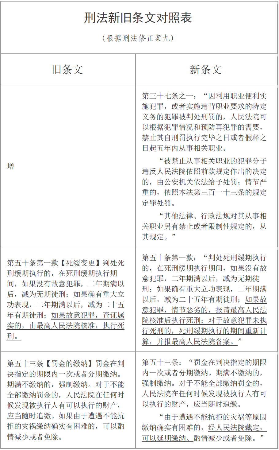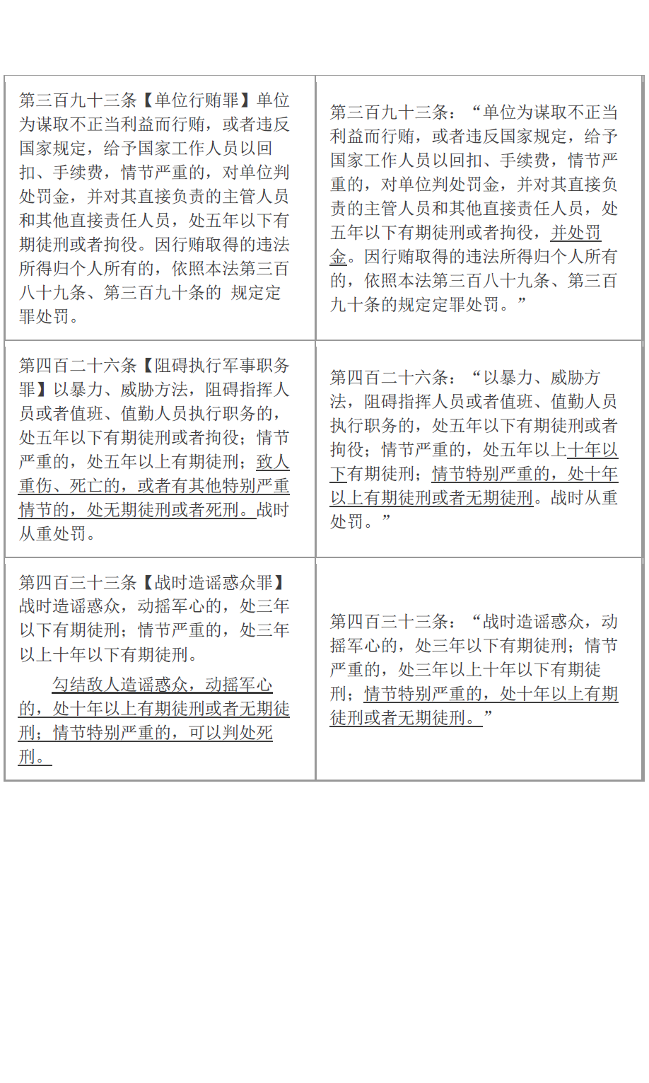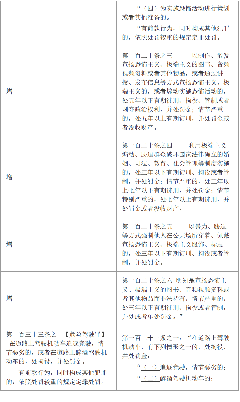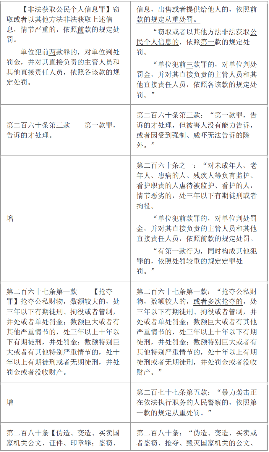 刑法新旧条文对照表(根据刑法修正案九整理)