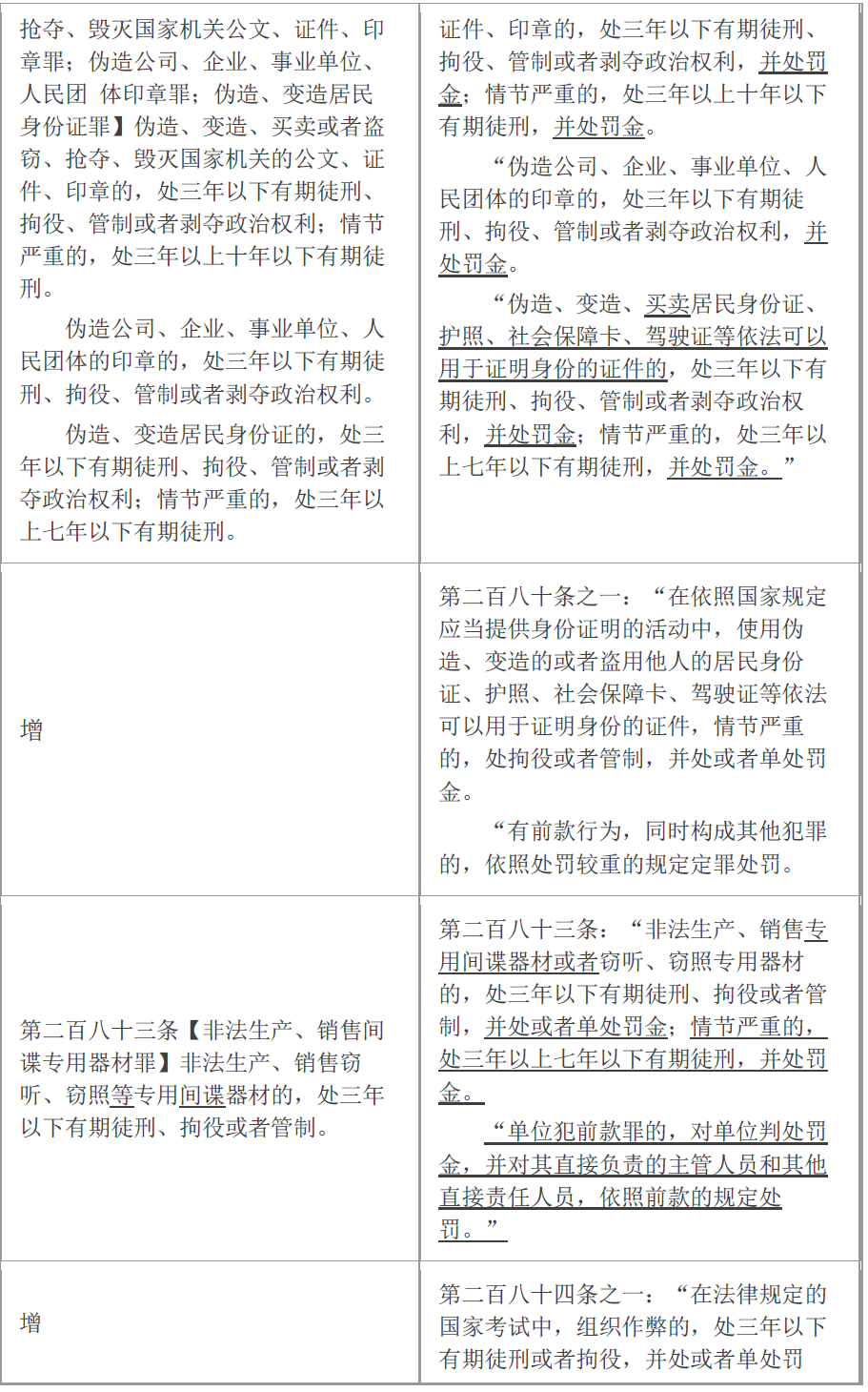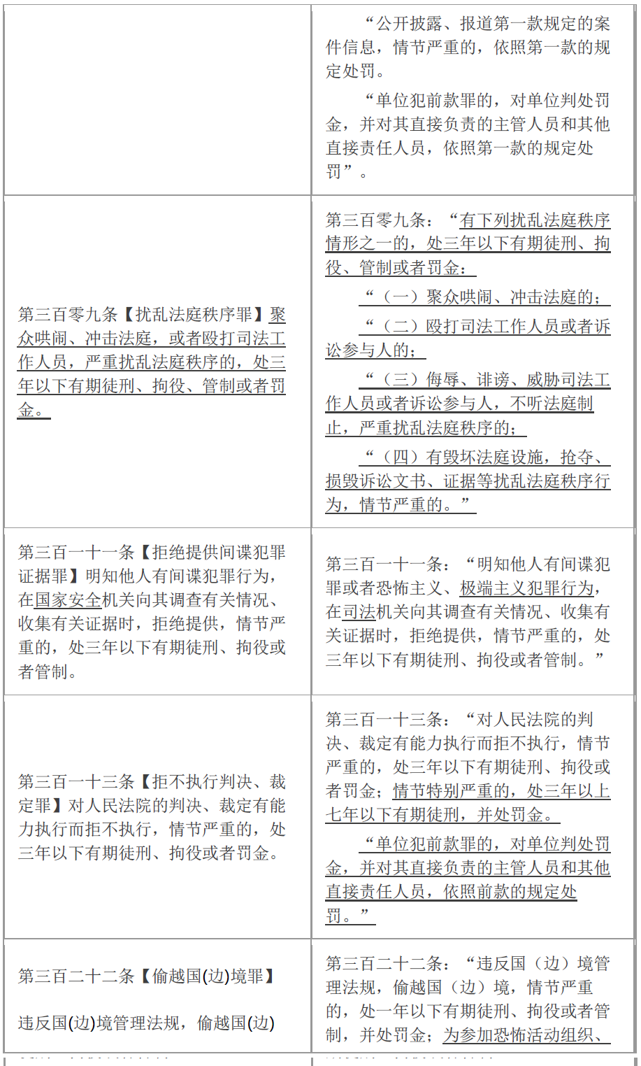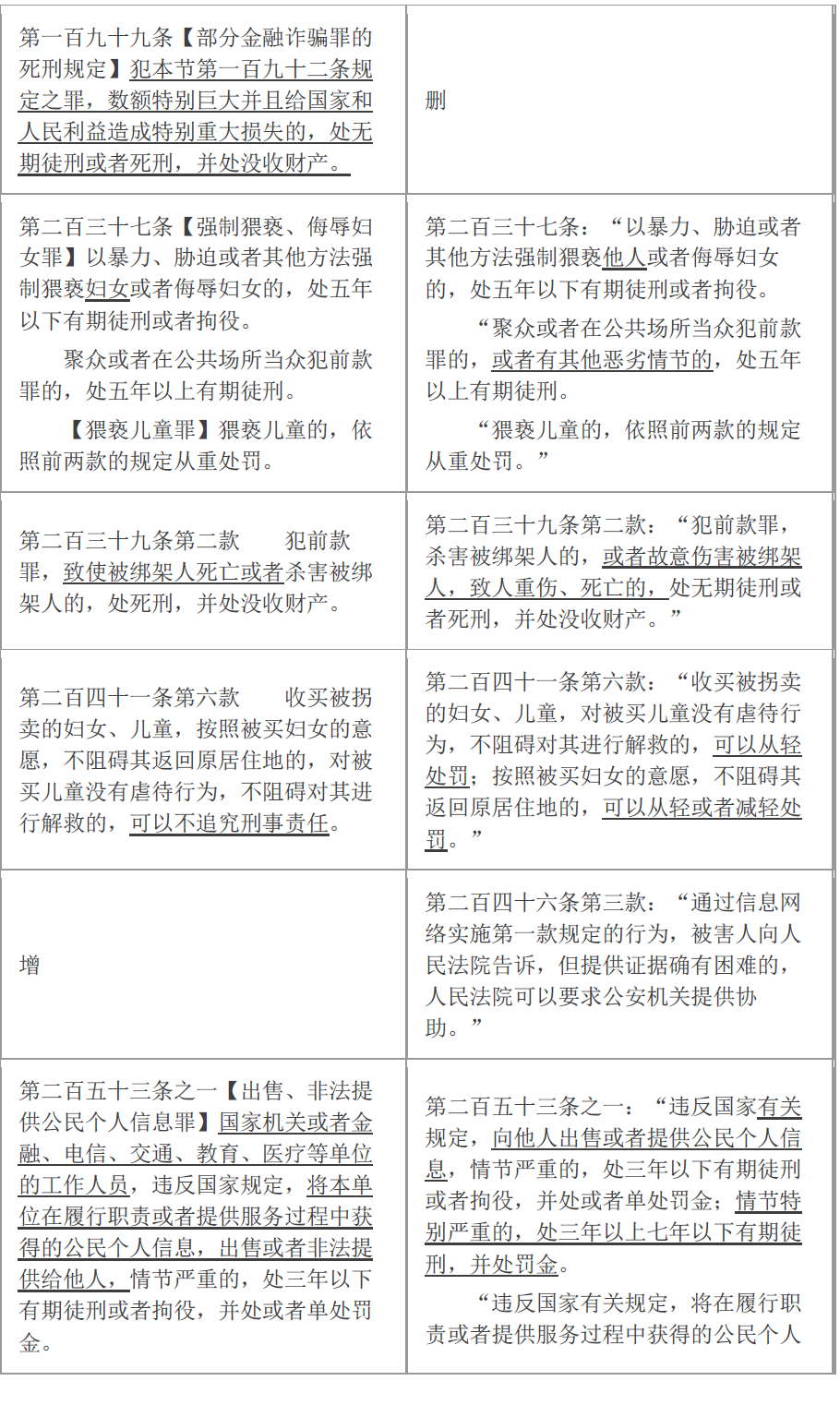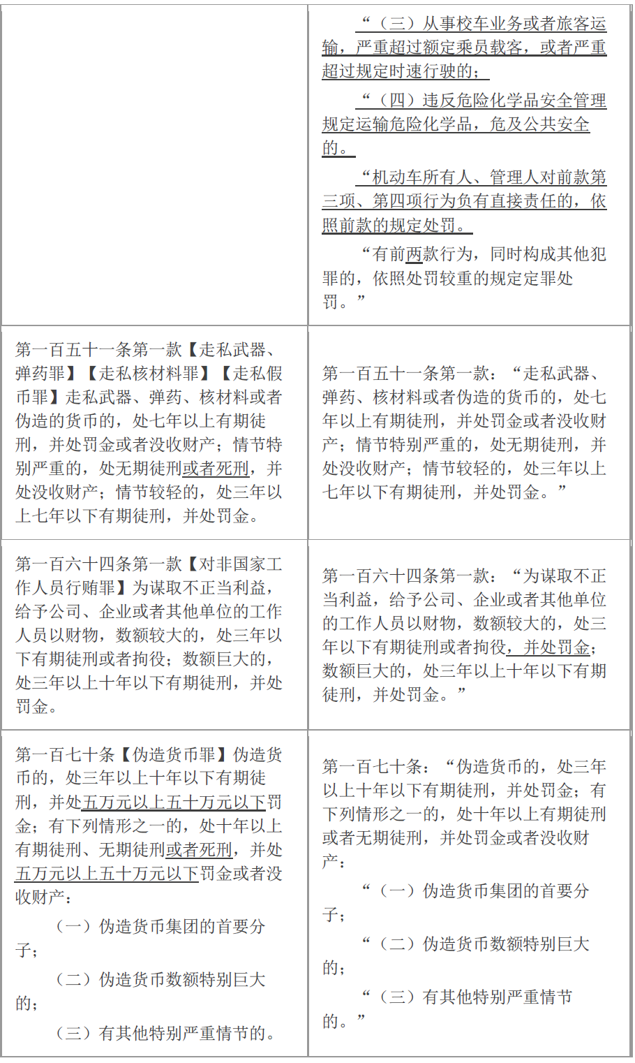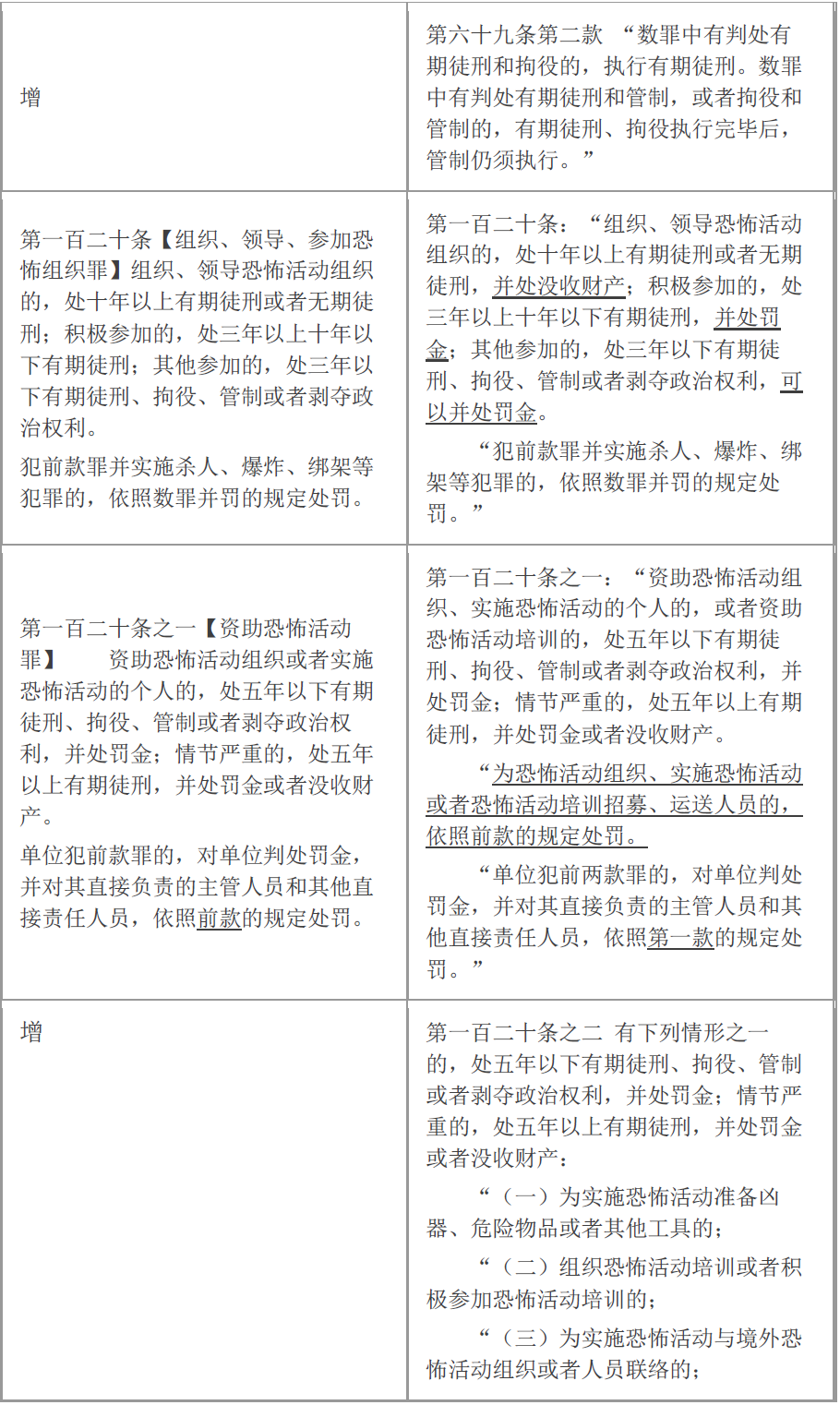 刑法新旧条文对照表(根据刑法修正案九整理)