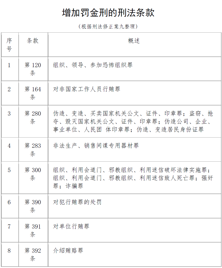增加罚金刑的刑法条款